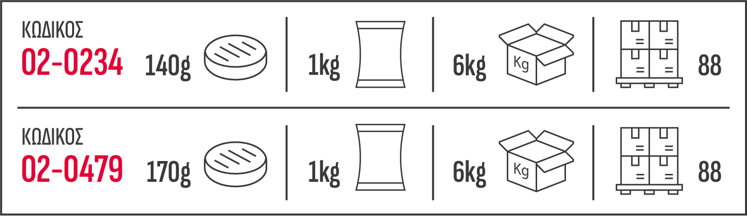 Smash μπιφτέκι με πλούσια υφή και μοναδική γεύση. Ισορροπεί ιδανικά ανάμεσα σε τραγανή επιφάνεια και τρυφερό κέντρο, δημιουργώντας burgers με “comfort” χαρακτήρα και δυνατή γευστική εμπειρία. Μια επιλογή που δίνει βάθος και ένταση σε κάθε σύνθεση.