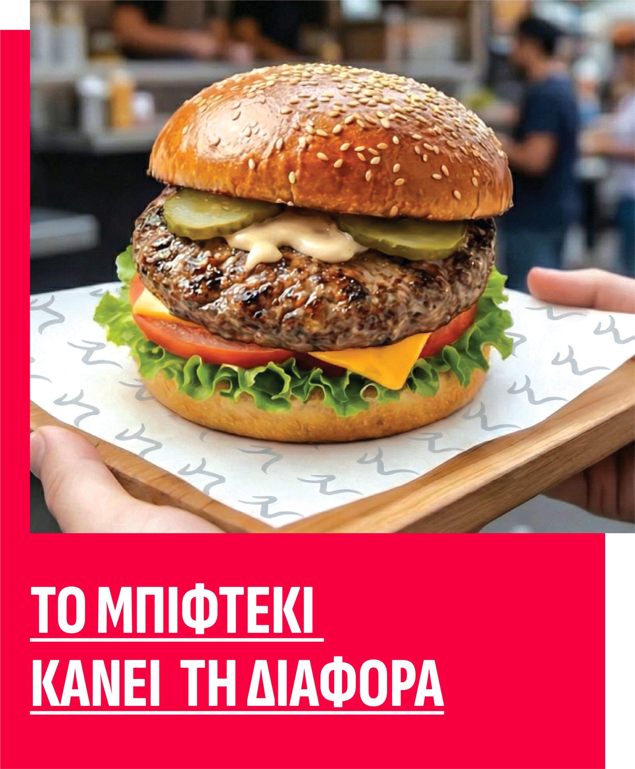 Μοσχαρίσιο μπιφτέκι, παχύ, ζουμερό και πλούσιο, σχεδιασμένο για γεμάτες, “comfort” προτάσεις. Γεμάτη, πλούσια γεύση με ελαφρύ κάπνισμα.